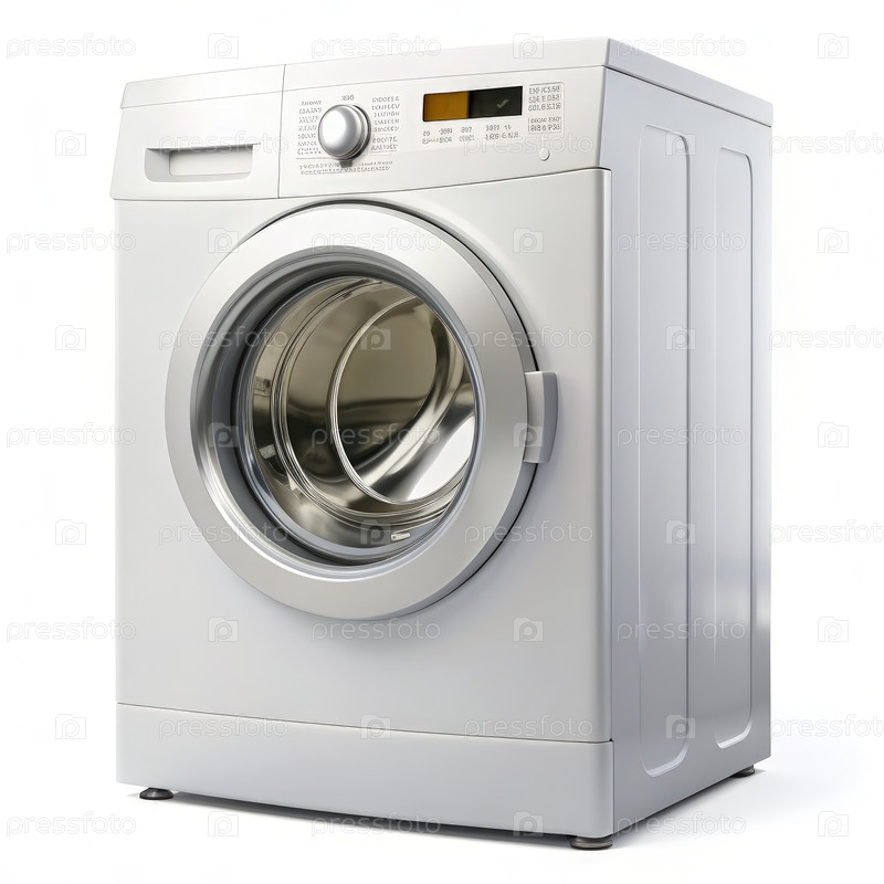 Серебряная стиральная машина изолирована на белом фоне. генеративный ИИ