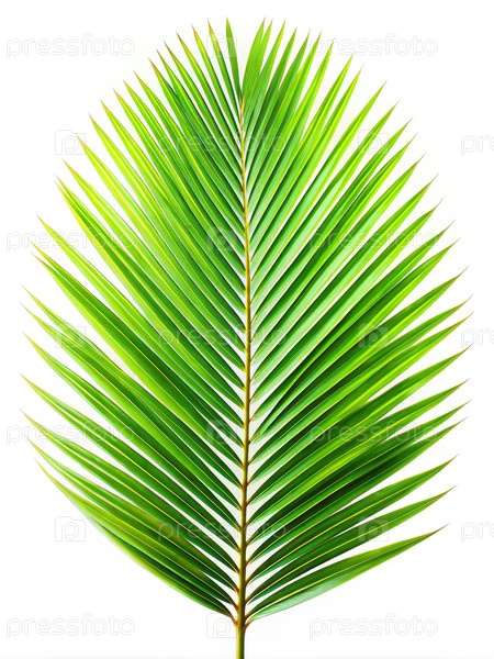 Однолистный пальмовый лист на белом фоне