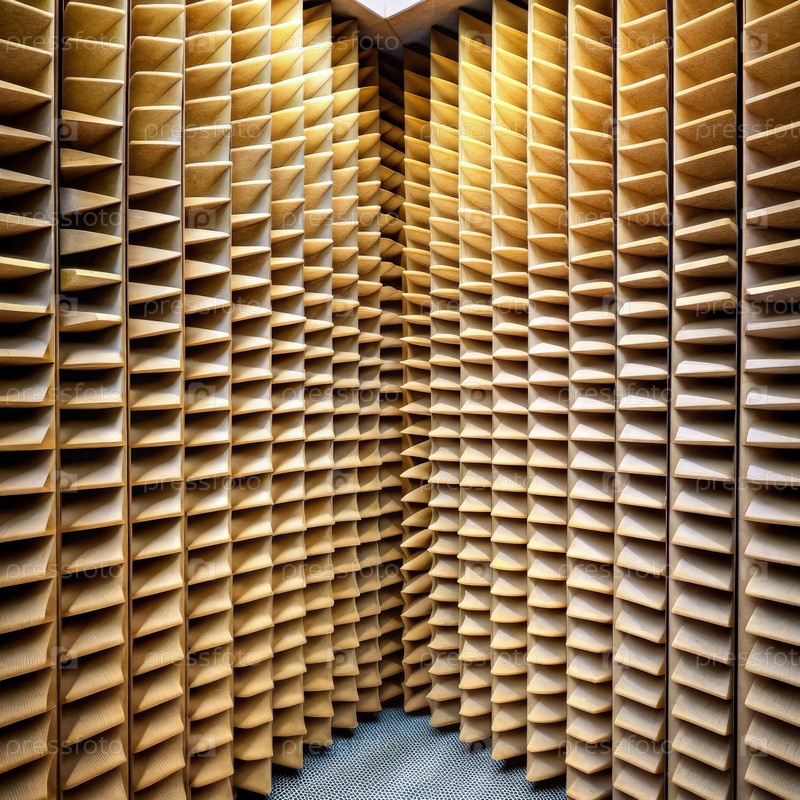 Пустая комната, облицованная акустическими панелями в анехоичной камере