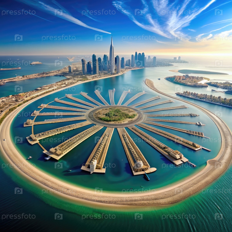 Вид с воздуха на Пальму Джумейра, искусственный остров в Дубае, Объединенные Арабские Эмираты