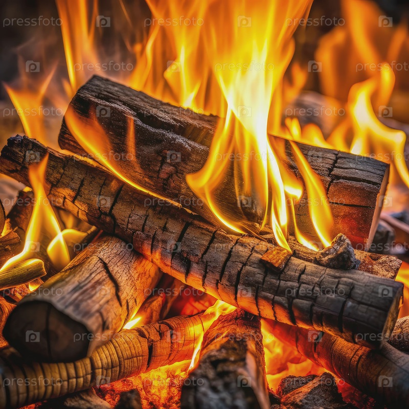 Огненные бревна, горящие в ночном костре