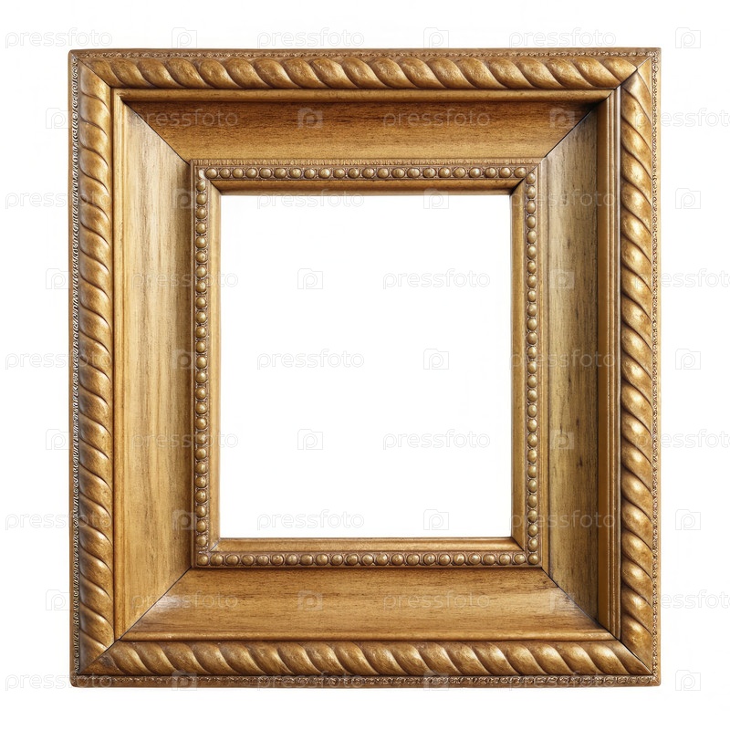 Ближайшее изображение пустой украшенной деревянной картинки на белом фоне