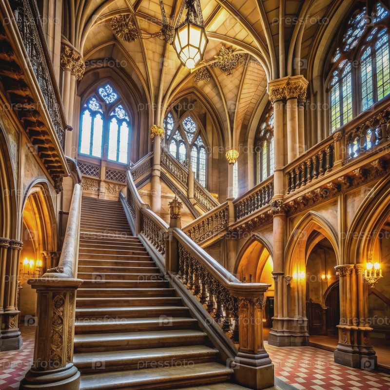 Величественная готическая лестница в Большом зале в Соединенном Королевстве