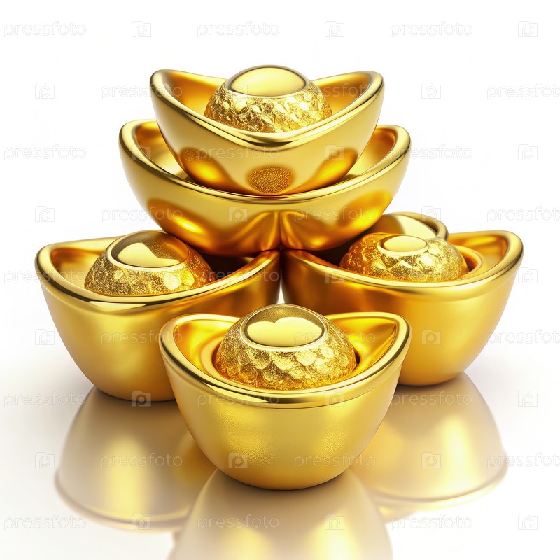 Роскошные украшения из золотых слитков, сложенные элегантно на белом фоне со сверкающей поверхностью