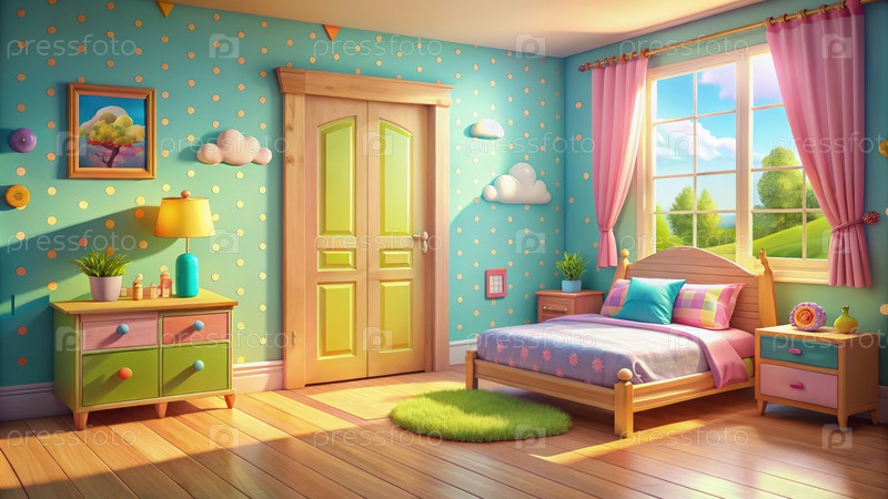 Очаровательная мультсериальная спальня с красочным декором и теплым естественным светом в уютной обстановке