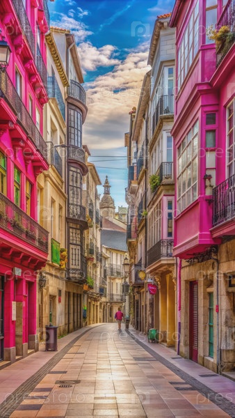 Розовые оттенки главной улицы Виго: мирная послеобеденная прогулка по испанскому городу