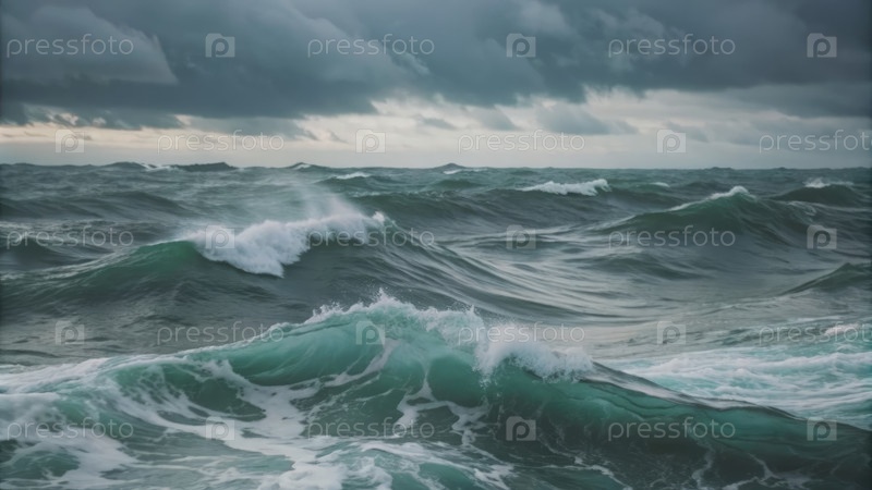 Большие волны разбиваются под темным небом на открытом океане