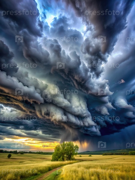 Драматическое штормовое небо над сельским полем на закате