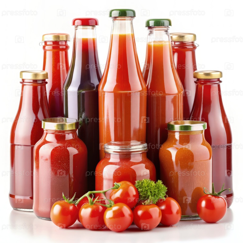 Коллекция свежефлакованных сортов кетчупа и томатного соуса на дисплее для кулинарного использования