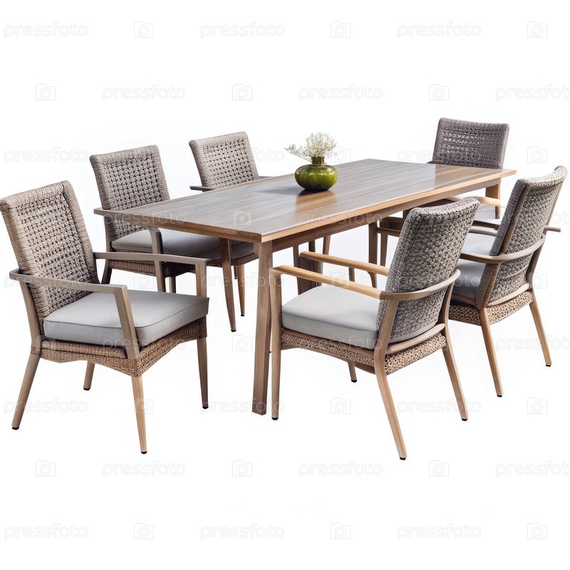 Детский обеденный набор с деревянным столом на белом фоне