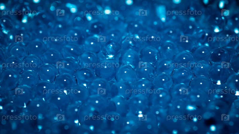 Крупный план синих гидрогелевых шариков, лежащих, словно сказочные жемчужины