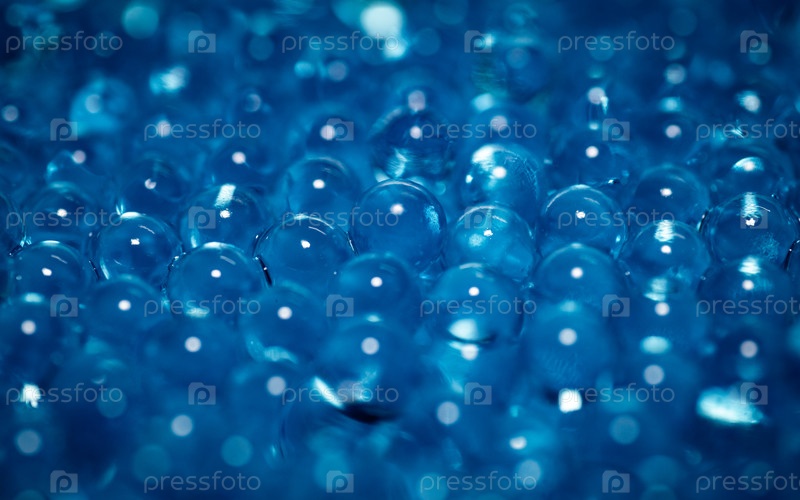 Крупный план синих гидрогелевых шариков, лежащих, словно сказочные жемчужины