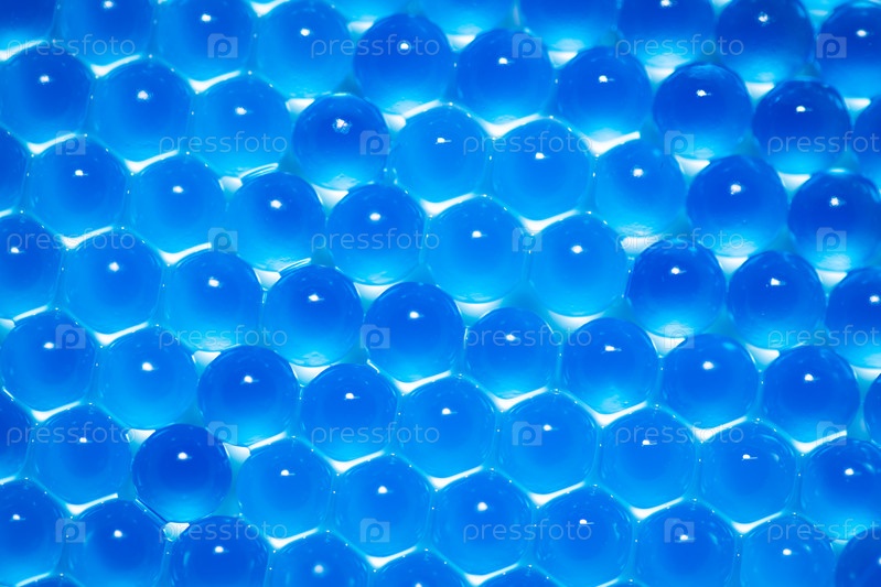 Синие гидрогелевые шарики лежат ровным слоем на белом фоне, образуя узор, напоминающий шестигранные соты