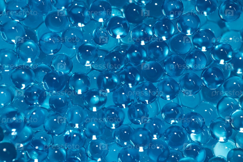 Крупный план синих гидрогелевых шариков. Фон в стиле научной фантастики