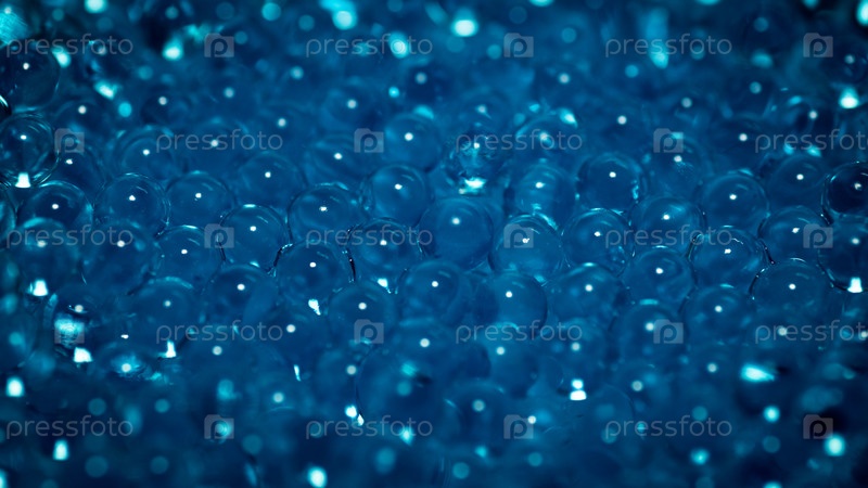 Крупный план синих гидрогелевых шариков, лежащих, словно сказочные жемчужины