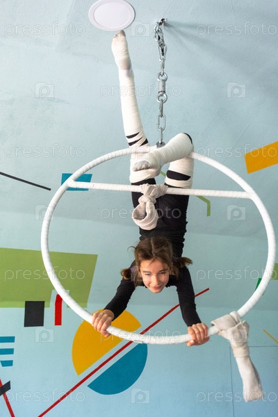Воздушные трюки гимнастки-школьницы, акробатические выступления, защищенные эластичными лентами, безопасный детский цирковый класс