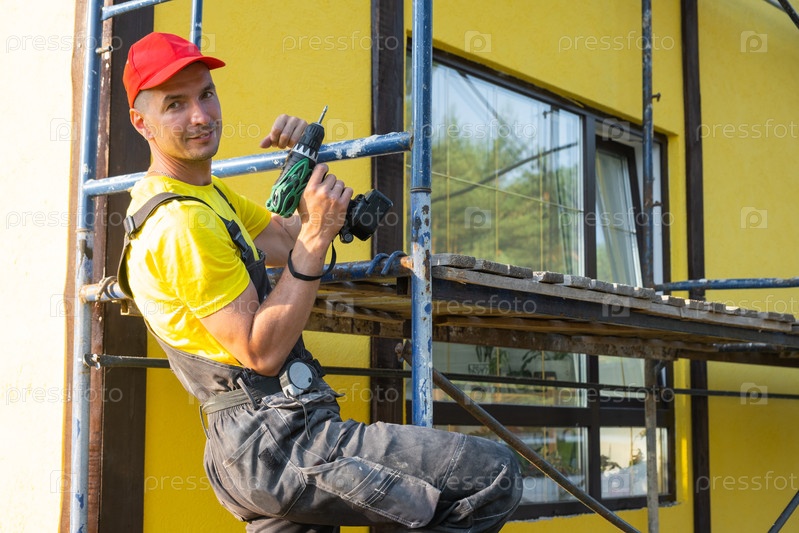 Работник по ремонту с бурением на леса, фасад дома, обслуживание в домашних условиях, оборудование для строительства, покраска, техническое обслуживание, деловой ремонт мастера, эксперт по отделке