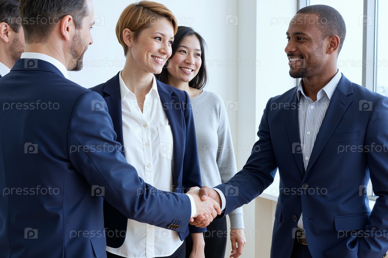 Мультиэтнические молодые взрослые бизнес-профессионалы пожали друг другу руки в офисе