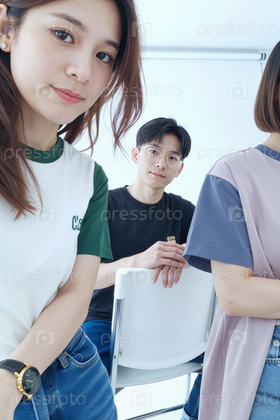 Портрет трех молодых взрослых азиатских друзей, позирующих вместе в помещении
