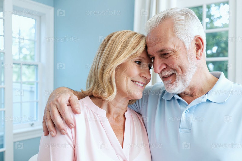 Старшая кавказская пара, которая ласково обнимается и улыбается в помещении
