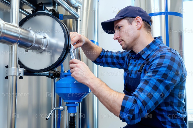 Кавказский молодой взрослый мужчина работает с промышленным оборудованием в современном помещении