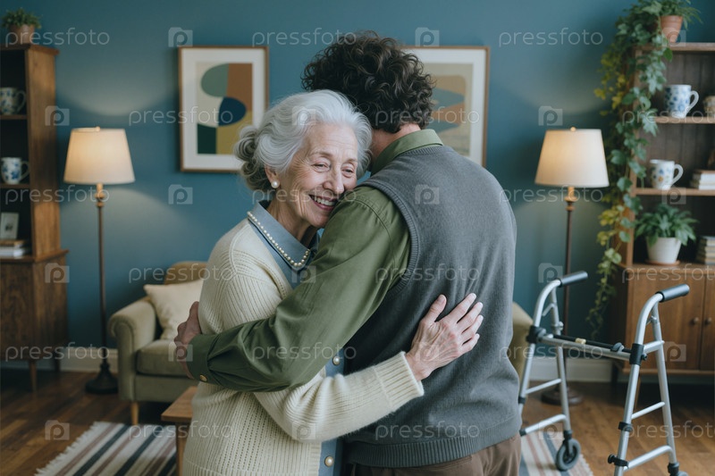 Женщина-старший с инвалидностью, которая принимает опекуна дома