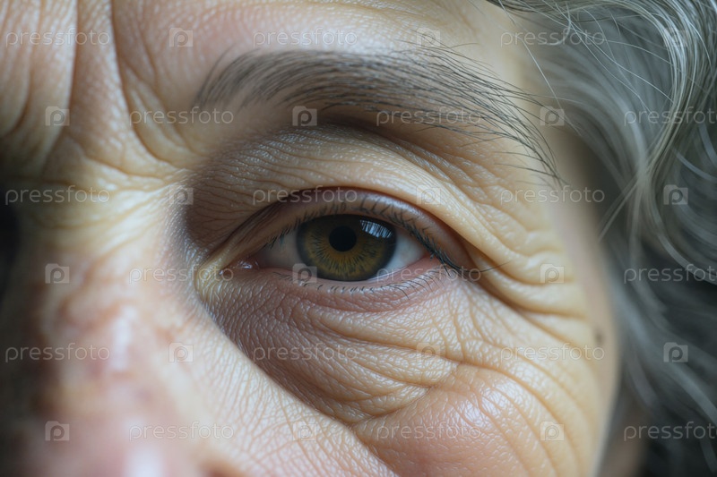 Старшая женщина глаз показывает старение текстуры кожи для маркетинга по уходу за кожей