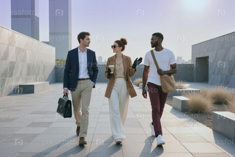 Различные деловые коллеги ходят и разговаривают во время перерыва на работе
