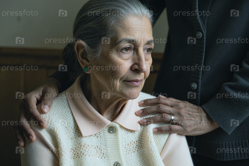 Пожилая женщина, получающая эмоциональную поддержку во время посещения ухода