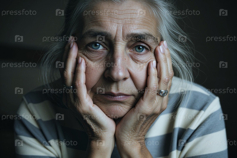 Портрет пожилой женщины, держащей лицо и выражающей одиночество