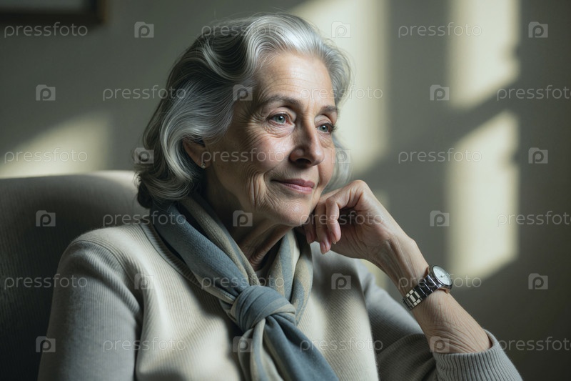 Старшая женщина, размышляющая дома о концепции планирования выхода на пенсию