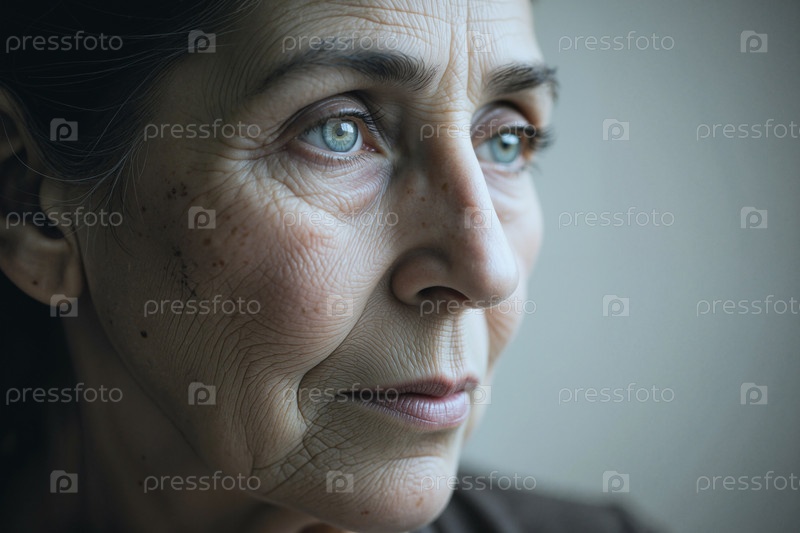 Старшая женщина, размышляющая о здоровом старении и оздоровлении по уходу за кожей
