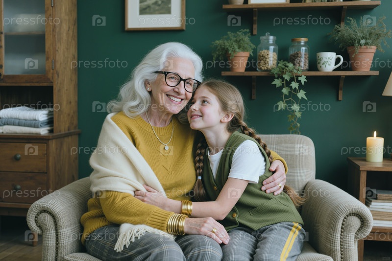 Портрет старшей женщины, обнимающей девочку для кампании Family Care
