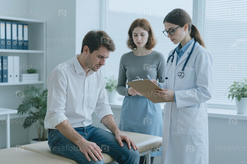 Мужчина-взрослый консультирует врача во время медицинского осмотра в клинике