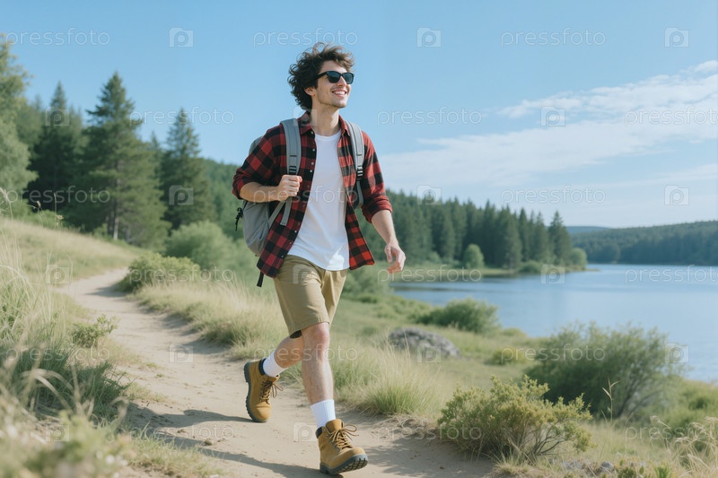 Взрослый мужчина ходит по озеру для летних путешествий и приключений на открытом воздухе