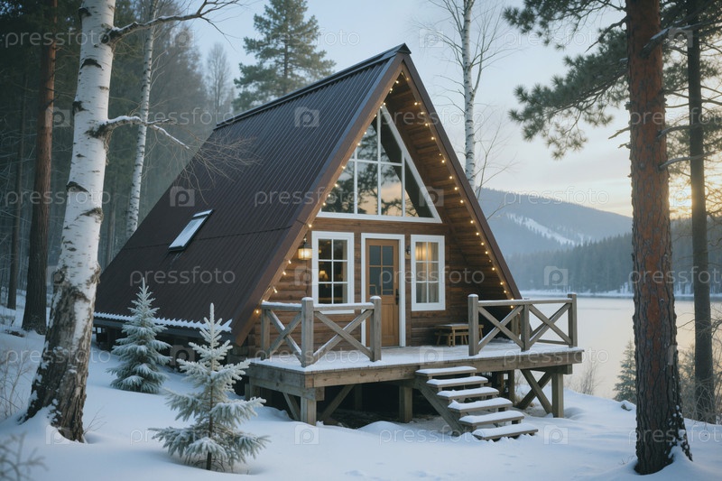 Кабинка, стоящая в снежном лесу для зимнего маркетинга путешествий
