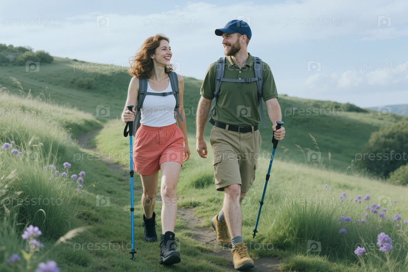 Пары взрослых ходят по сельской тропе для активных путешествий