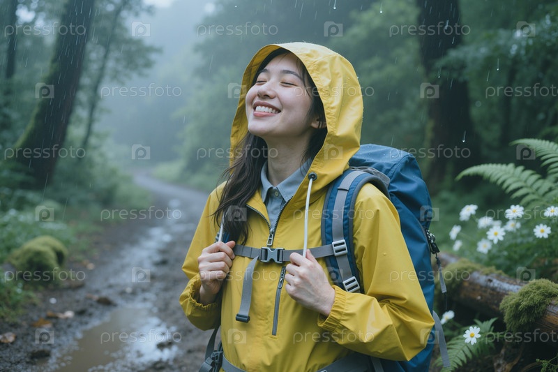 Взрослая азиатская женщина ходит в тропический лес для оздоровительных путешествий
