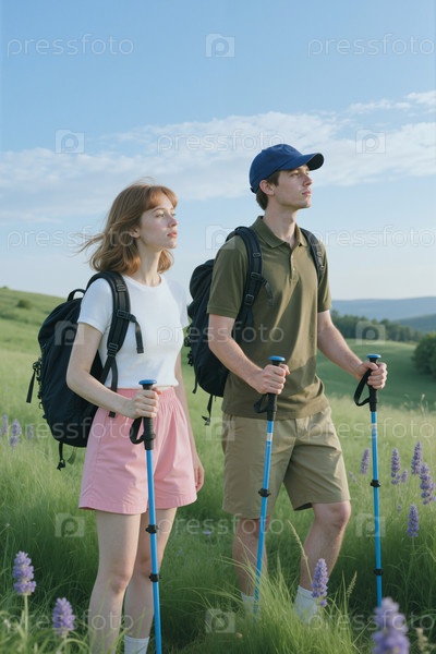 Мужчина и женщина, путешествующие с рюкзаками для летних поездок
