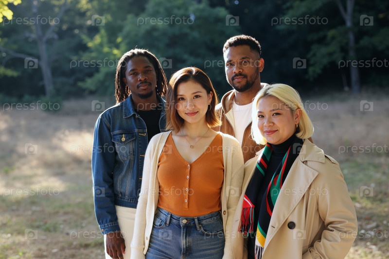 Портрет разных взрослых друзей, стоящих на улице за кампанию по включению
