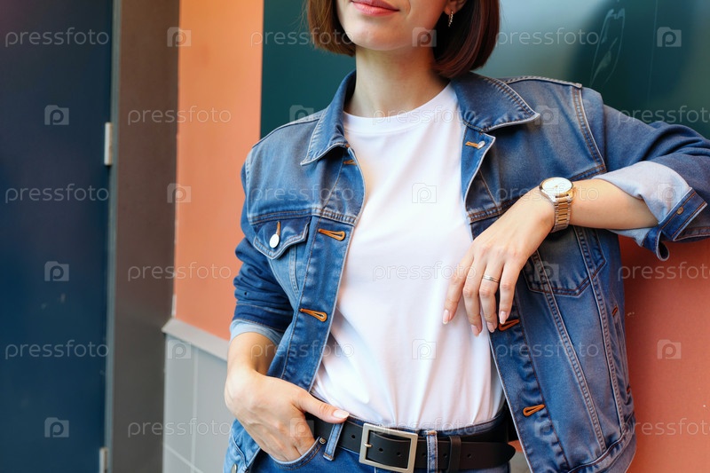 Взрослая женщина позирует случайным образом для модного розничного брендинга