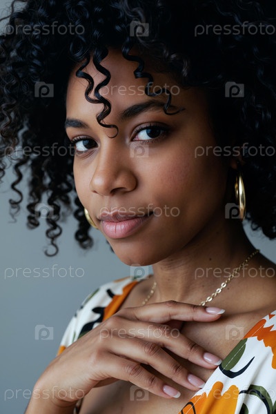 Портрет чернокожей взрослой женщины, позирующей для кампании бренда красоты