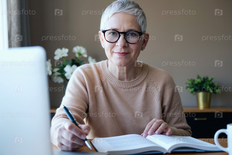 Портрет пожилой женщины, изучающей дома для обучения на протяжении всей жизни