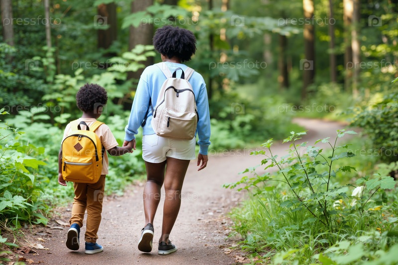 Мать и ребенок ходят по Чернолесной тропе для семейных путешествий