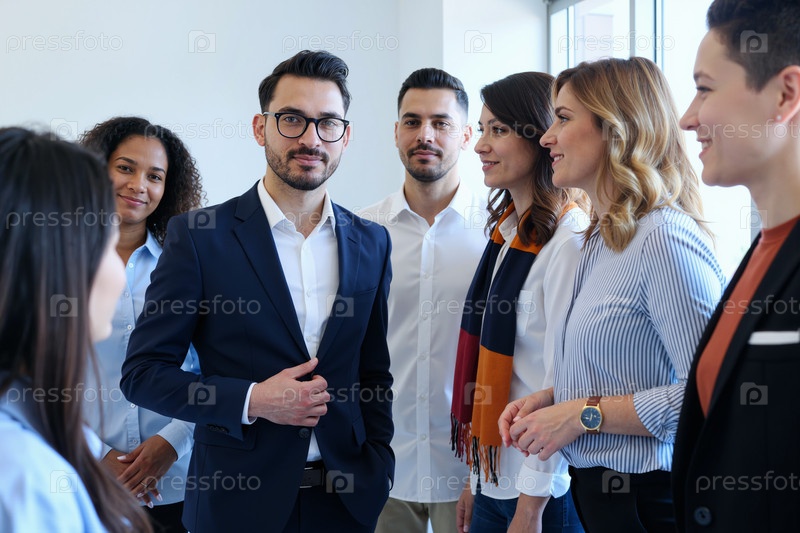 Портрет разнообразной бизнес-команды, стоящей на офисной встрече