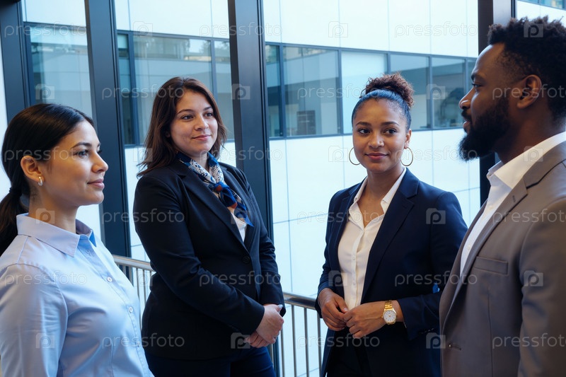 Различные бизнес-команды обсуждают сотрудничество в современном офисе