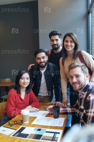 Портрет разнообразной взрослой команды, сотрудничающей в творческом проекте
