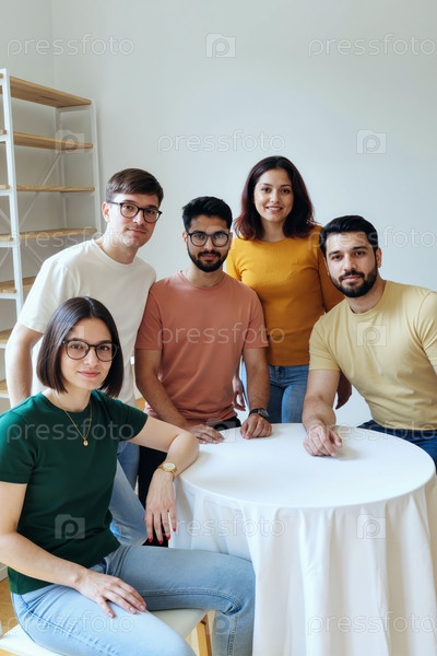 Портрет разнообразной взрослой команды, позирующей для брендинга стартапов