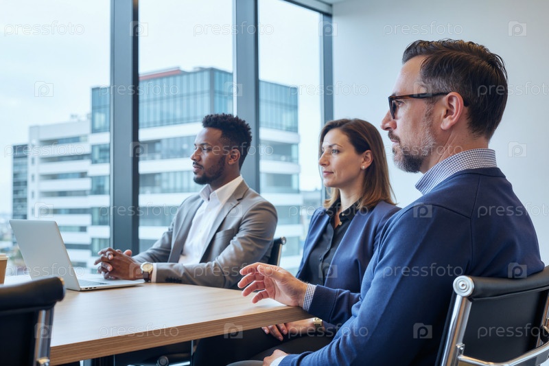 Разнообразная бизнес-команда посещает стратегическое совещание в современном офисе