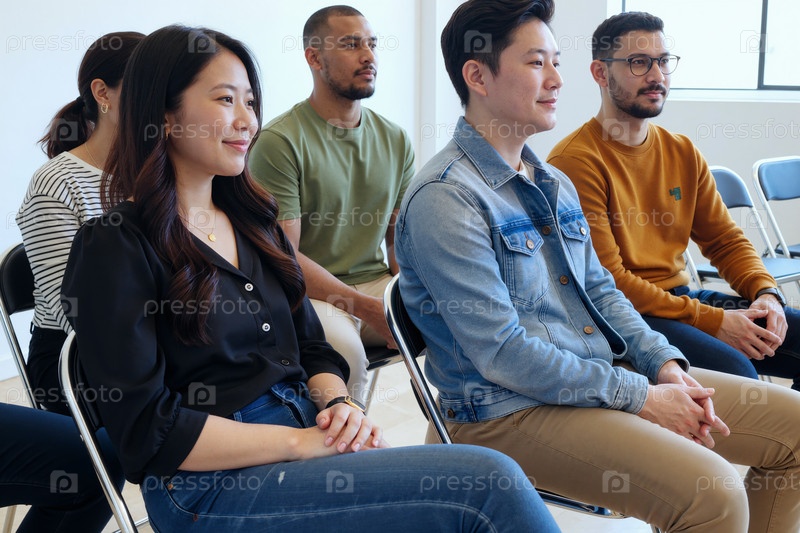Мультиэтнические взрослые, посещающие обучающее занятие на рабочем месте